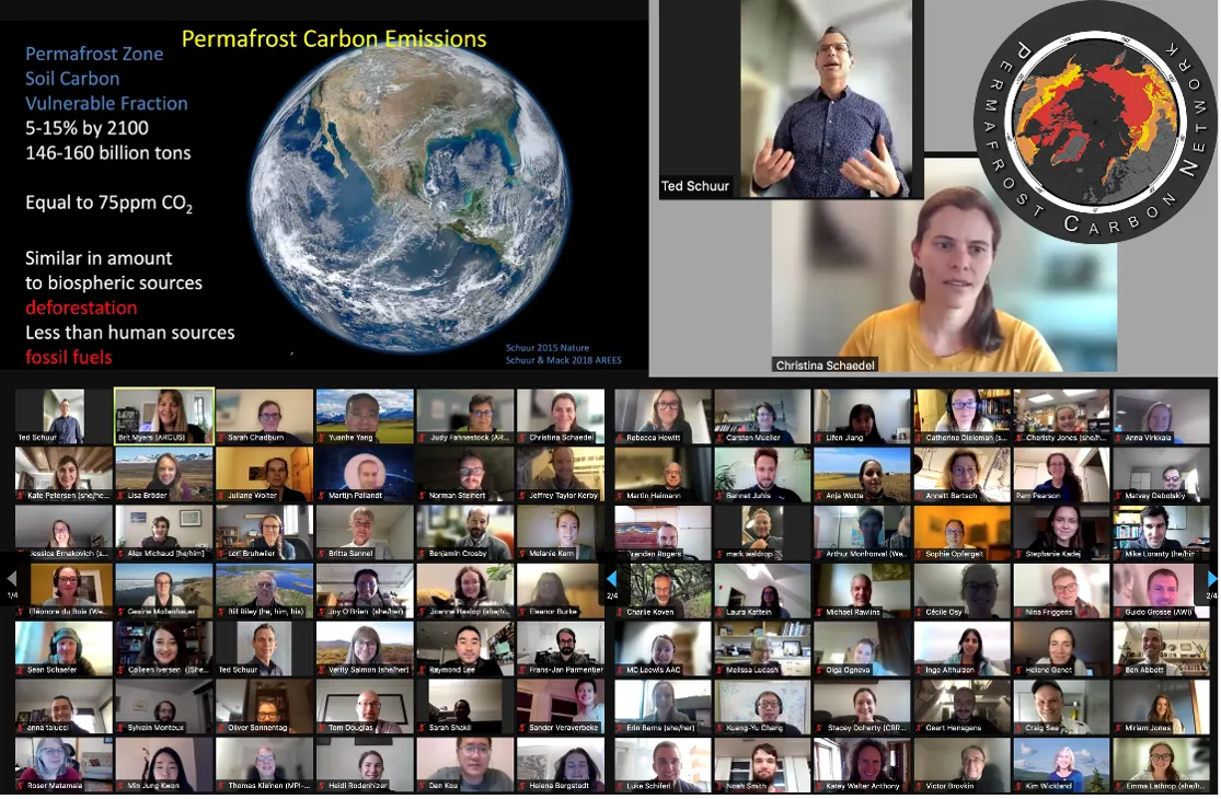 NGEE Arctic is excited to participate in synthesis activities with the broader Arctic community. The Permafrost Carbon Network (PCN) has provided a collaborative framework where researchers from around the world come together to synthesize data from high latitude ecosystems. The PCN’s 11th annual gathering was held online from November 16th-17th. The online forum was popular: the meeting had over 200 registered participants, 18 of which were associated with NGEE Arctic. On November 16th the meeting focused on high-level communication of permafrost science, with Ted Schuur (NAU) leading a panel discussion and breakout on permafrost research within IPPC AR6 and SROCC. Kate Petersen (NAU) led a panel discussion and breakout on science communication strategies with input from researchers, policy advocates, and Washington Post climate reporter Chris Mooney. On November 17th, meeting attendees shared updates from ongoing synthesis projects and identified climate-relevant questions that future synthesis efforts could address. Breakout groups discussed remote permafrost change detection (Mike Loranty & Guido Grosse), model development & survey (Christina Schädel), paleo carbon evidence (Miriam Jones & Claire Treat), carbon flux timeseries and upscaling (Ted Schuur & Craig See), ground ice across spatial scales (Tom Douglas), and nutrient interactions with carbon and climate (Verity Salmon & Jessica Ernakovich). The meeting agenda is available here and more information is available on the PCN’s website at http://www.permafrostcarbon.org/.