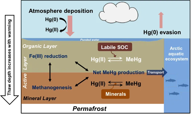 Results show that climate warming and permafrost thaw could potentially enhance methylmercury toxin production by an order of magnitude, impacting Arctic terrestrial and aquatic ecosystems by increased exposure to mercury through bioaccumulation and biomagnification in the food web.