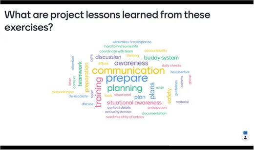 The NGEE Arctic project is a rich and diverse mix of national laboratory and university scientists, faculty, and early career researchers all working to better understand the fate of tundra ecosystems in a rapidly changing world. A major component of this project focuses on field research that requires frequent travel to remote areas of Alaska far removed from our normal support network often provided by family and friends. It is amidst this diverse and dynamic environment that project members find themselves in unfamiliar places working alongside people from equally diverse backgrounds and life experiences. The exercises were intended to start respectful conversations and exchange of ideas among the team, and to answer the question “What would you do?” under specific and targeted events that the team envisioned could happen to anyone during the course of normal NGEE Arctic field work in remote areas of Alaska. Thus, the NGEE Arctic team gathered together virtually over the course of two days in late August 2021 to discuss these real-life scenarios, raise situational awareness, and assess their level of preparedness during a series of Table Top exercises patterned after those held by FEMA. Approximately 30 NGEE Arctic team members participated on each day, and rotated through a series of five breakout rooms led by project facilitators on Arctic-specific scenarios ranging from: a serious car accident, to a suspected COVID-19 illness, to an encounter with a visitor in the field, to sexual/verbal assault, to a negative wildlife encounter. Responses from participants indicated that the initial event was a success, and each breakout session was able to provide feedback on the needed pre-planning for each scenario, the consensus scenario response(s), and topics for further project consideration. These conversations and lessons learned will be included in our project safety manual and this event has served as an excellent example of safety planning for at least one local institution. Our team has made a commitment to hold these exercises on a semi-regular basis, such as during our annual All-Hands Meeting or before the field season begins each spring.